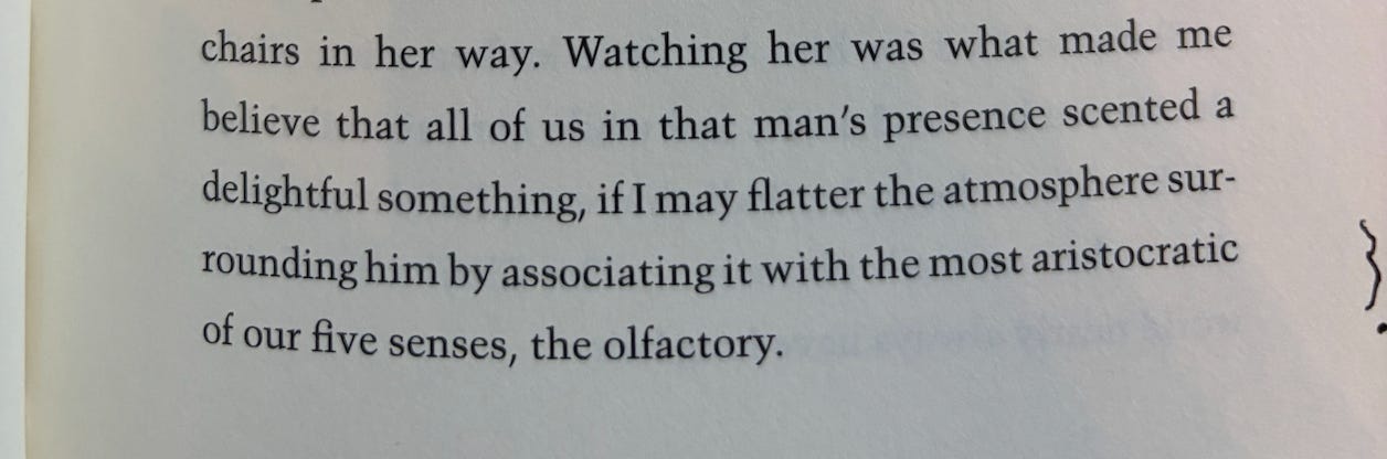 As example: it seems that people have come to the general consensus that our sense of smell is the most animal of our senses, the most tied to deep unknowable subconsciousness and lost memory. And here comes Colette: