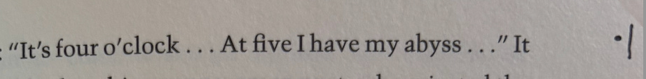 at four o’clock i have my lukewarmness, at five i have my abyss